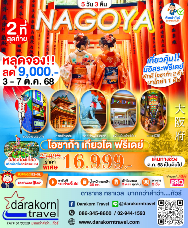 โปรไฟไหม้ ทัวร์ญี่ปุ่น นาโกนย่า โอซาก้า ดกียวโต ฟรีเดย์ 5วัน3คืน โปรแรง ลดราคาสูงสุด 9000 จองด่วน 2 ที่สุดท้าย Posted on October 1, 2025October 1, 2025 by Sales Darakorn Travel 01 Oct ทัวร์ญี่ปุ่น นาโกนย่า โอซาก้า ดกียวโต ฟรีเดย์ 5วัน3คืน โปรแรง ลดราคาสูงสุด 9000 จองด่วน 2 ที่สุดท้าย ศาลเจ้าเฮอัน ศาลเจ้าฟูชิมิอินาริ แจ๊สดรีมเอ้าท์เล็ท ตลาดนิชิกิ วันเดินทาง 03 – 07 ต.ค. 68 จากราคา 25,999.- เหลือเพียง 16,999.- Facebook iconFacebookTwitter iconTwitterLINE iconLine Sales Darakorn Travel ทัวร์มาเก๊า ก็แค่ปากซอย 3วัน2คืน โปรแรง ราคาดีสุดๆ จองด่วน ทัวร์ญี่ปุ่น นาโกย่า ฟูจิ 5วัน3คืน โปรแรง ลดราคาสูงสุด 11000 จองด่วน 2 ที่สุดท้าย