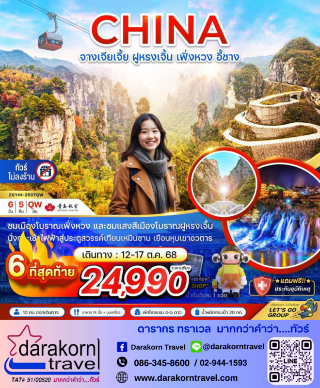 โปรไฟไหม้ ทัวร์จีน จางเจียเจี้ย ฝูหรงเจิ้น เฟิ่งหวง อี้ชาง 6วัน5คืน โปรแรง เหลือ6ที่สุดท้าย Posted on October 6, 2025October 6, 2025 by Sales Darakorn Travel 06 Oct ทัวร์จีน จางเจียเจี้ย ฝูหรงเจิ้น เฟิ่งหวง อี้ชาง 6วัน5คืน โปรแรง เหลือ6ที่สุดท้าย ชมเมืองโบราณเฟิ่งหวง และ ชมแสงสีโบราณฝูหรงเจิ้น นั่งกระเช้าไฟฟ้าสู่ประตูสวรรค์ เทียนเหมินซาน เยือนหุบเขาอวตาร วันเดินทาง 12 – 17 ต.ค. 68 จากราคา 24,990.- เหลือเพียง 24,990.- Facebook iconFacebookTwitter iconTwitterLINE iconLine Sales Darakorn Travel ทัวร์ญี่ปุ่น โตเกียว ฮาเนดะ ฟูจิ อิบารากิ ใบไม้เปลี่ยนสี 6วัน4คืน โปรแรง ลดราคาสูงสุด 4000 จองด่วน ทัวร์ไต้หวัน เถาหยวน เจียอี้ อาลีซาน ผิงซี ไทเป 5วัน4คืน โปรแรง ลดราคาสูงสุด 2000 จองด่วน