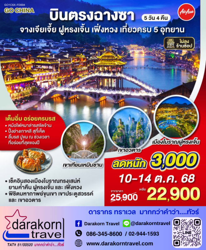 โปรไฟไหม้ ทัวร์จีน บินตรง ฉางซา จางเจียเจี้ย ฝูหรงเจิ้น เที่ยว5อุทยาน 5วัน4คืน โปรแรง ลดราคา 3000 บาท จองด่วน Posted on October 7, 2025 by Sales Darakorn Travel 07 Oct ทัวร์จีน บินตรง ฉางซา จางเจียเจี้ย ฝูหรงเจิ้น เที่ยว5อุทยาน 5วัน4คืน โปรแรง ลดราคา 3000 บาท จองด่วน เขาเทียนเหมินซาน เขาอวตาร หมู่บ้านโบราณฝูหรงเจิ้น เขาประตูสวรรค์ วันเดินทาง 10 – 14 ต.ค.68 จากราคา 25,900.- เหลือเพียง 22,900. Facebook iconFacebookTwitter iconTwitterLINE iconLine Sales Darakorn Travel ทัวร์จีน หุบเขาเทวดาวั่งเซียนกู่ อู้หยวน หนานชาง จิ๋งเต๋อเจิ้น 6วัน5คืน โปรแรง ลดราคา 6000 บาท จองด่วน ทัวร์ญี่ปุ่น MT.OMURO UJI 6วัน4คืน โปรแรง ลดราคา 6000 บาท จองด่วน