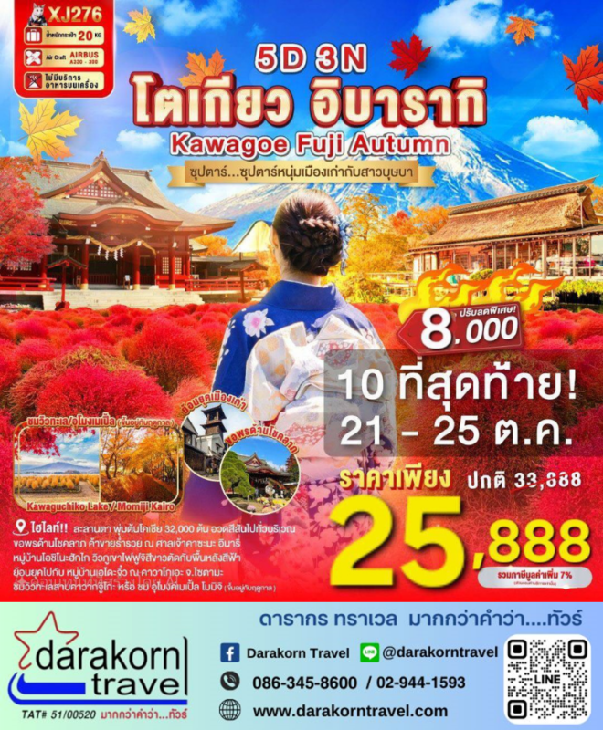 โปรไฟไหม้ ทัวร์จีน โตเกียว อิบารากิ 5วัน3คืน โปรแรง ลดราคา 8000 บาท จองด่วน 10 ที่สุดท้าย Posted on October 15, 2025 by Sales Darakorn Travel 15 Oct ทัวร์จีน โตเกียว อิบารากิ 5วัน3คืน โปรแรง ลดราคา 8000 บาท จองด่วน 10 ที่สุดท้าย พุ่มต้นโครเชีย 3200 ต้น ศาลเจ้าคาซะมะ อินาริ ตลาดปลานากามินาโตะ หหมู่บ้านชิราคาวาโกะ ฮักไก ชมทะเลสาบคาวากุจิโกะ วันเดินทาง 21- 25 ต.ค. 68 จากราคา 35,888.- เหลือเพียง 25,888. Facebook iconFacebookTwitter iconTwitterLINE iconLine Sales Darakorn Travel ทัวร์จีน โตเกียว ฟูจิ 5วัน3คืน โปรแรง ลดราคา 4000 บาท จองด่วน
