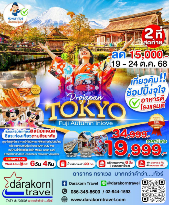 โปรไฟไหม้ ทัวร์ญี่ปุ่น ฟูจิ ออทัม อินเลิฟ 6วัน4คืน โปรแรง ลดราคา 15000 บาท จองด่วน 2 ที่สุดท้าย Posted on October 16, 2025 by Sales Darakorn Travel 16 Oct ทัวร์ญี่ปุ่น ฟูจิ ออทัม อินเลิฟ 6วัน4คืน โปรแรง ลดราคา 15000 บาท จองด่วน 2 ที่สุดท้าย ศาลเจ้าโคมิตาโกะ โอไดบะ หมู่บ้านน้ำใส ภูเขาไฟฟูจิ ชั้น5 วันเดินทาง 19-24 ต.ค.68 จากราคา 34,999.- เหลือเพียง 19,999. Facebook iconFacebookTwitter iconTwitterLINE iconLine Sales Darakorn Travel ทัวร์เวียดนาม ดานัง เว้ ฮอยอัน พักบานาฮิลล์ 4วัน3คืน โปรแรง ลดราคา 7000 บาท จองด่วน 2 ที่สุดท้าย ทัวร์มาเก๊า จูไห่ สเปคชิพ 3วัน2คืน โปรแรง ลดราคา 6000 บาท จองด่วน 4 ที่สุดท้าย