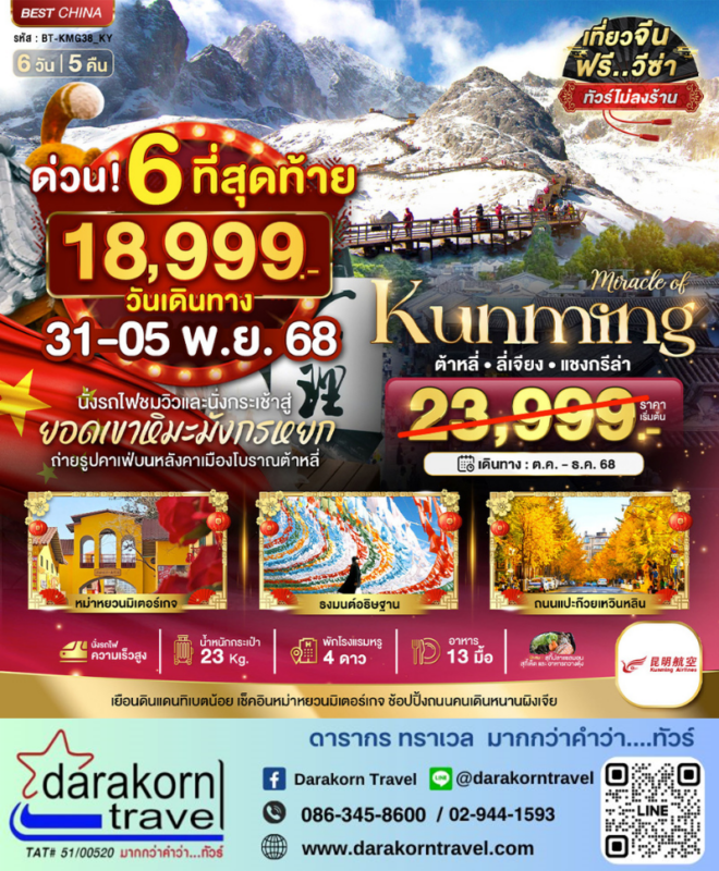 โปรไฟไหม้ ทัวร์จีน ต้าหลี่ ลี่เจียงแชงกรีล่า 6วัน5คืน โปรแรง ลดราคา 5000 บาท จองด่วน 6 ที่สุดท้าย Posted on October 20, 2025 by Sales Darakorn Travel 20 Oct ทัวร์จีน ต้าหลี่ ลี่เจียงแชงกรีล่า 6วัน5คืน โปรแรง ลดราคา 5000 บาท จองด่วน 6 ที่สุดท้าย ธงมนต์อธิษฐาน ถนนแปะก๊วยเหวินหลิน หม่าหยวนมิเตอร์เกจ ช้อปปิ้งถนนคนเดินหนานผิงเจีย วันเดินทาง 31 ตุลาคม – 05 พ.ย.68 จากราคา 23,999.- เหลือเพียง 18,999. Facebook iconFacebookTwitter iconTwitterLINE iconLine Sales Darakorn Travel ทัวร์ญี่ปุ่น อันซีน ทาคายาม่า ทตโทริ 6วัน4คืน โปรแรง ลดราคา 3000 บาท จองด่วน ทัวร์จีน เฉิงตู ภูเขาสี่ดรุณี 5วัน4คืน โปรแรง ลดราคา 6000 บาท จองด่วน 4 ที่สุดท้าย
