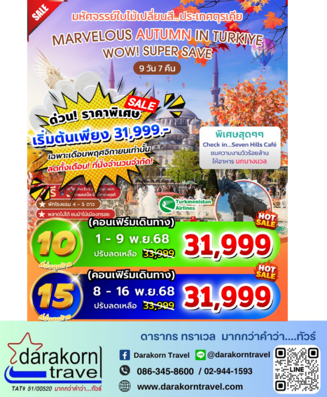 โปรไฟไหม้ ทัวร์ตุรกี ใบไม้เปลี่ยนสี ของตุรกี 9วัน7คืน โปรแรง ลดราคา 2000 บาท จองด่วน Posted on October 22, 2025 by Sales Darakorn Travel 22 Oct ทัวร์ตุรกี ใบไม้เปลี่ยนสี ของตุรกี 9วัน7คืน โปรแรง ลดราคา 2000 บาท จองด่วน ภูม้าไม้เมืองทรอย สุเหร่าสีน้ำเงิน ฮิปโปโดรม สุเหร่าเซนต์โซเฟีย ปราสาทปุยฝ้าย วันเดินทาง 01-09/08-16 พ.ย.68 จากราคา 33,999.- เหลือเพียง 31,999. Facebook iconFacebookTwitter iconTwitterLINE iconLine Sales Darakorn Travel ทัวร์จีน คุนหมิง ต้าหลี่ ลี่เจี่ยง 6วัน5คืน โปรแรง ลดราคา 10000 บาท จองด่วน ทัวร์เวียดนาม ดานัง ฮอยอัน เที่ยวบานาฮิลล์ 4วัน3คืน โปรแรง ลดราคา 1000 บาท จองด่วน 4 ที่สุดท้าย