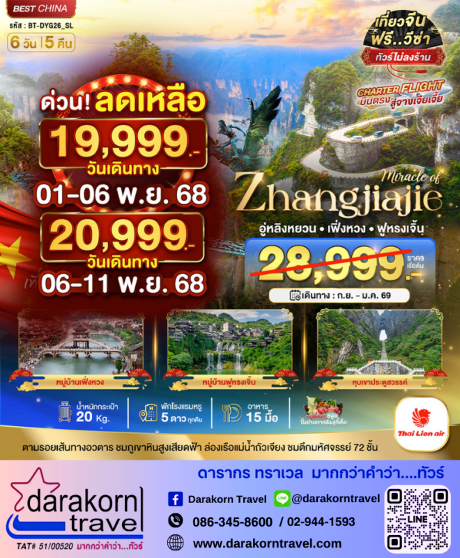 โปรไฟไหม้ ทัวร์จีน จางเจียเจี้ย อู่หลิงหยวน 6วัน5คืน โปรแรง ลดราคาสูงสุด 9000 บาท จองด่วน Posted on October 28, 2025 by Sales Darakorn Travel 28 Oct ทัวร์จีน จางเจียเจี้ย อู่หลิงหยวน 6วัน5คืน โปรแรง ลดราคาสูงสุด 9000 บาท จองด่วน หมู่บ้านฟูหรงเจิ้น หุบเขาประตูสวรรค์ หมู่บ้านเฟิ่งหวง ล่องเรือแม่น้ำถัวเจียง ชมตึกมหัศจรรย์ 72 ชั้น วันเดินทาง 01-06/06-11 พ.ย. 68 จากราคา 28,999.- เหลือเพียง 19,999.-/20,999.- Facebook iconFacebookTwitter iconTwitterLINE iconLine Sales Darakorn Travel ทัวร์จีน ซีอาน สุสานทหารจิ๋นซี 4วัน3คืน โปรแรง ลดราคา 1000 บาท จองด่วน ทัวร์จีน จางเจียเจี้ย ฟูหรงเจิ้น หุบเขาอวตาร 6วัน5คืน โปรแรง ลดราคาสูงสุด 5000 บาท จองด่วน