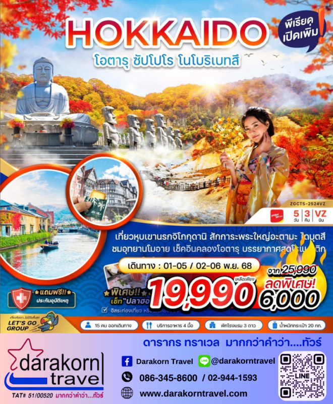 โปรไฟไหม้ ทัวร์ญี่ปุ่น ฮอกไกโด โอตารุ ซัปโปโร โนโบรึเบทสึ 5วัน3คืน โปรแรง ลดราคา 6000 บาท จองด่วน Posted on October 29, 2025 by Sales Darakorn Travel 29 Oct ทัวร์ญี่ปุ่น ฮอกไกโด โอตารุ ซัปโปโร โนโบรึเบทสึ 5วัน3คืน โปรแรง ลดราคา 6000 บาท จองด่วน เที่ยวหุบเขานรกจิโกกุดานิ สักการะพระใหญ่อะตามะ ไดบุตสึ ชมอุทยานโมอาย เช็คอินคลองโอตารุ วันเดินทาง 01-05/02-06 พ.ย.68 จากราคา 25,990.- เหลือเพียง 19,990.- Facebook iconFacebookTwitter iconTwitterLINE iconLine Sales Darakorn Travel ทัวร์จีน วินเทอร์ ฉงชิ่ง 4วัน3คืน โปรแรง ลดราคาสูงสุด 4000 บาท จองด่วน ทัวร์จอร์แดน เอาซิ จอร์แดน จพแพงทำไมก่อน 6วัน4คืน โปรแรง ลดราคาสูงสุด 7000 บาท จองด่วน