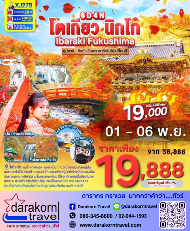 โปรไฟไหม้ ทัวร์ญี่ปุ่น โตเกียว นิกโก ฟูกุชิม่า 6วัน4คืน โปรแรง ลดราคา 19000 บาท จองด่วน Posted on October 29, 2025 by Sales Darakorn Travel 29 Oct ทัวร์ญี่ปุ่น โตเกียว นิกโก ฟูกุชิม่า 6วัน4คืน โปรแรง ลดราคา 19000 บาท จองด่วน ชมน้ำตกฟุคุโรดะ น้ำตกที่สวยที่สุด 1ใน3ของญี่ปุ่น ละลานตาใบไม้เปลี่ยนสี ณ สวนนันโกะ วัดซาซะเอโดะ ช้อปปิ้งย่านชินจูกุ วันเดินทาง 01 – 06 พ.ย. 68 จากราคา 38,888.- เหลือเพียง 19,888.- Facebook iconFacebookTwitter iconTwitterLINE iconLine Sales Darakorn Travel ทัวร์จอร์แดน เอาซิ จอร์แดน จพแพงทำไมก่อน 6วัน4คืน โปรแรง ลดราคาสูงสุด 7000 บาท จองด่วน ทัวร์ญี่ปุ่น โตเกียว ฟูจิ ฮาโกเน่ 5วัน3คืน โปรแรง ลดราคา 16000 บาท จองด่วน