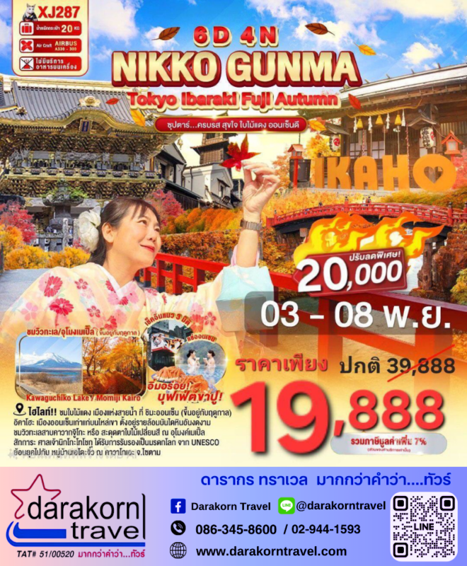 โปรไฟไหม้ ทัวร์ญี่ปุ่น โตเกียว นิกโก อิบารากิ 6วัน4คืน โปรแรง ลดราคา 20000 บาท จองด่วน Posted on October 29, 2025 by Sales Darakorn Travel 29 Oct ทัวร์ญี่ปุ่น โตเกียว นิกโก อิบารากิ 6วัน4คืน โปรแรง ลดราคา 20000 บาท จองด่วน ชมใบไม้แดง เมืองแห่งสายน้ำ ที่ชิมะออนเซ็น อิคาโฮะ เมืองออนเซ็นเก่าแก่ ชมวิวทะเลสาบคาวากุจิโกะ ช้อปปิ้งย่านชินจูกุ วันเดินทาง 03 – 08 พ.ย.68 จากราคา 39,888.- เหลือเพียง 19,888.- Facebook iconFacebookTwitter iconTwitterLINE iconLine Sales Darakorn Travel ทัวร์ญี่ปุ่น โตเกียว ฟูจิ ฮาโกเน่ 5วัน3คืน โปรแรง ลดราคา 16000 บาท จองด่วน ทัวร์ญี่ปุ่น โอซาก้า อูจิ โอบาระ 5วัน3คืน โปรแรง ลดราคา 18000 บาท จองด่วน
