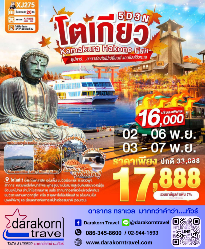 โปรไฟไหม้ ทัวร์ญี่ปุ่น โตเกียว ฟูจิ ฮาโกเน่ 5วัน3คืน โปรแรง ลดราคา 16000 บาท จองด่วน Posted on October 29, 2025 by Sales Darakorn Travel 29 Oct ทัวร์ญี่ปุ่น โตเกียว ฟูจิ ฮาโกเน่ 5วัน3คืน โปรแรง ลดราคา 16000 บาท จองด่วน นั่งรถไฟคลาสิค เอโนเด็น ชมเมืองชมวิว สักการะหลวงพ่อโตไดบุทสึ ชมวิวทะเลสาบคาวากูจิโกะ วันเดินทาง 03- 07 พ.ย.68 จากราคา 33,888.- เหลือเพียง 17,888.- Facebook iconFacebookTwitter iconTwitterLINE iconLine Sales Darakorn Travel ทัวร์ญี่ปุ่น โตเกียว นิกโก ฟูกุชิม่า 6วัน4คืน โปรแรง ลดราคา 19000 บาท จองด่วน ทัวร์ญี่ปุ่น โตเกียว นิกโก อิบารากิ 6วัน4คืน โปรแรง ลดราคา 20000 บาท จองด่วน