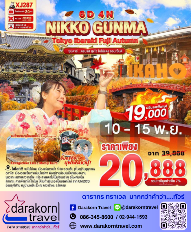 โปรไฟไหม้ ทัวร์ญี่ปุ่น นิกโก้ กันมา ออนเซ็นดี 6วัน4คืน โปรแรง ลดราคาสูงสุด 19000 บาท จองด่วน Posted on November 4, 2025 by Sales Darakorn Travel 04 Nov ทัวร์ญี่ปุ่น นิกโก้ กันมา ออนเซ็นดี 6วัน4คืน โปรแรง ลดราคาสูงสุด 19000 บาท จองด่วน ชมใบไม้เปลี่ยนสี เมืองแห่งสายน้ำ ชมวิวทะเลสาบคาวากุจิโกะ ศาลเจ้านิกโกะโทโชกุ หมู่บ้านเอโดะจิ๋ว ณ คาวาโกะเอะ วันเดินทาง 10 – 15 พ.ย. 68 จากราคา 39,888.- เหลือเพียง 20,888.- Facebook iconFacebookTwitter iconTwitterLINE iconLine Sales Darakorn Travel ทัวร์ญี่ปุ่น โตเกียว นิกโก้ เรารักใบไม้เปลี่ยนสี 6วัน4คืน โปรแรง ลดราคาสูงสุด 16000 บาท จองด่วน ทัวร์ญี่ปุ่น นาโกย่า เกียวโต 6วัน4คืน โปรแรง ลดราคาสูงสุด 16000 บาท จองด่วน