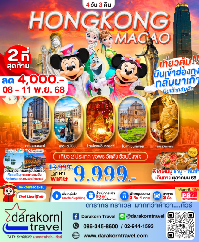 โปรไฟไหม้ ทัวร์ฮ่อกง ขอพร วัดดัง ช้อปปิ้งจุใจ 4วัน3คืน โปรแรง ลดราคาสูงสุด 3000 บาท จองด่วน Posted on November 5, 2025 by Sales Darakorn Travel 05 Nov ทัวร์ฮ่อกง ขอพร วัดดัง ช้อปปิ้งจุใจ 4วัน3คืน โปรแรง ลดราคาสูงสุด 3000 บาท จองด่วน เดอะเวนีเซียน แม่กวนอิมฮองฮำ โบสถ์เวนต์พอล สะพานมังกร โบสถ์สีชมพู วันเดินทาง 08 – 11 พ.ย. 68 จากราคา 13,999.- เหลือเพียง 9,999.- Facebook iconFacebookTwitter iconTwitterLINE iconLine Sales Darakorn Travel ทัวร์เวียดนาม พักบานาฮิลล์ 4วัน3คืน โปรแรง ลดราคาสูงสุด 7000 บาท จองด่วน