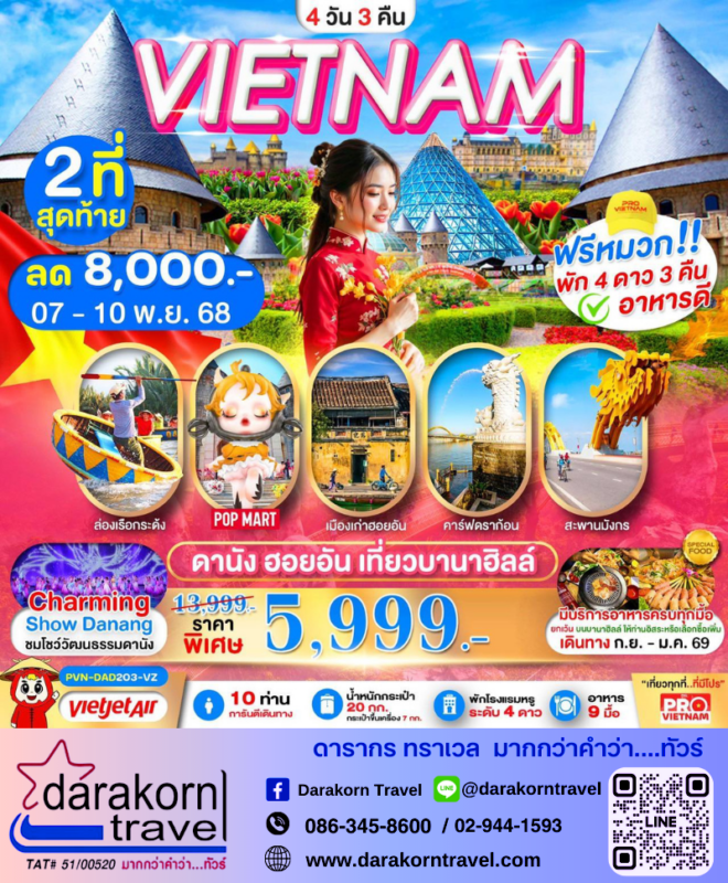 โปรไฟไหม้ ทัวร์เวียดนาม ดานัง ฮอยอัน เที่ยวบานา 4วัน3คืน โปรแรง ลดราคาสูงสุด 8000 บาท จองด่วน 2 ที่สุดท้าย Posted on November 5, 2025 by Sales Darakorn Travel 05 Nov ทัวร์เวียดนาม ดานัง ฮอยอัน เที่ยวบานา 4วัน3คืน โปรแรง ลดราคาสูงสุด 8000 บาท จองด่วน 2 ที่สุดท้าย เมืองเก่าฮอยอัน นั่งเรือกระด้ง ดาร์ฟดราก้อน เช็คอินสะพานมังกร วันเดินทาง 07-10 พ.ย. 68 จากราคา 13,999.- เหลือเพียง 5,999.- Facebook iconFacebookTwitter iconTwitterLINE iconLine Sales Darakorn Travel ทัวร์เวียดนาม ดานังในฝัน นอนบานา 4วัน3คืน โปรแรง ลดราคาสูงสุด 3000 บาท จองด่วน ทัวร์เวียดนาม เกาะฟูก๊วก 3วัน2คืน โปรแรง ลดราคาสูงสุด 5000 บาท จองด่วน 2 ที่สุดท้าย