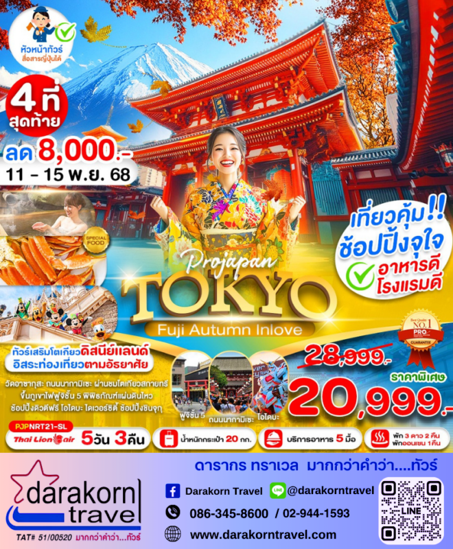 โปรไฟไหม้ ทัวร์ญี่ปุ่น โตเกียว ฟูจิ ออทัม อินเลิฟ 5วัน3คืน โปรแรง ลดราคาสูงสุด 8000 บาท จองด่วน Posted on November 6, 2025 by Sales Darakorn Travel 06 Nov ทัวร์ญี่ปุ่น โตเกียว ฟูจิ ออทัม อินเลิฟ 5วัน3คืน โปรแรง ลดราคาสูงสุด 8000 บาท จองด่วน วัดอาซากุสะ ฟูจิชั้น5 โอไดบะ ช้อปปิ้งย่านชินจูกุ วันเดินทาง 10-15 พ.ย. 68 จากราคา 28,999.- เหลือเพียง 20,999.- Facebook iconFacebookTwitter iconTwitterLINE iconLine Sales Darakorn Travel ทัวร์ญี่ปุ่น โอซาก้า ดูใบไม้เปลี่ยนสี 6วัน4คืน โปรแรง ลดราคาสูงสุด 11000 บาท จองด่วน ทัวร์ญี่ปุ่น ฮอกไกโด โรแมนติก 6วัน5คืน โปรแรง ลดราคาสูงสุด 17000 บาท จองด่วน