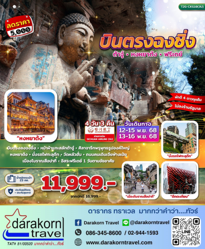 โปรไฟไหม้ ทัวร์จีน บินตรงฉงชิ่ง หงหยาต้ง 4วัน3คืน โปรแรง ลดราคาสูงสุด 5000 บาท จองด่วน Posted on November 7, 2025November 7, 2025 by Sales Darakorn Travel 07 Nov ทัวร์จีนิ บินตรงฉงชิ่ง หงหยาต้ง 4วัน3คืน โปรแรง ลดราคาสูงสุด 5000 บาท จองด่วน แกะสลักต้าจู๋ วัดหลัวฮั่น นั่งรถไฟทะลุตึุก ช้อปปิ้งถนนคนเดินเจียฟ่างเป่ย วันเดินทาง 12-15/13-16 พ.ย. 68 จากราคา 16,999.- เหลือเพียง 11,999.- Facebook iconFacebookTwitter iconTwitterLINE iconLine Sales Darakorn Travel ทัวร์ญี่ปุ่น ฟุกุโอกะ เบบปุ 5วัน3คืน โปรแรง ลดราคาสูงสุด 9000 บาท จองด่วน6 ที่สุดท้าย ทัวร์จีน เฉิงตู สี่ดรุณี ภูเขาหิมะวาวู่ 6วัน5คืน โปรแรง จองด่วน9 ที่สุดท้าย