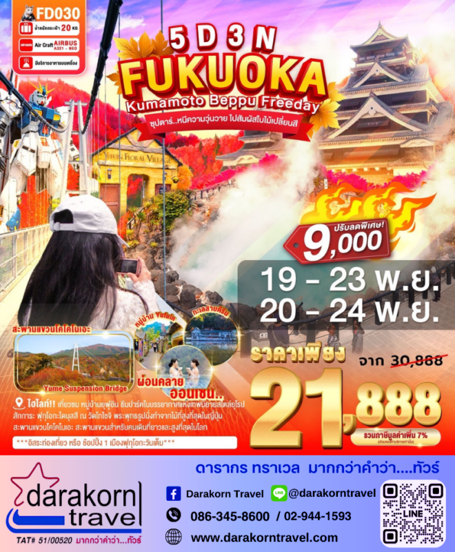 โปรไฟไหม้ ทัวร์ญี่ปุ่น ฟุกุโอกะ เบบปปุ ฟรีเดย์ 5วัน3คืน โปรแรง ลดราคา 9000 จองด่วน Posted on November 11, 2025 by Sales Darakorn Travel 11 Nov ทัวร์ญี่ปุ่น ฟุกุโอกะ เบบปปุ ฟรีเดย์ 5วัน3คืน โปรแรง ลดราคา 9000 จองด่วน หมู่บ้านยูฟุอิน ฟุกุโอกะไดบุสสึ ณ วัดโทไชจิ ปราสาทคุมาโมโตะ ทะเลสาบคิริน วันเดินทาง 19 – 23 / 20-24 พ.ย.68 จากราคา 30,888.- เหลือเพียง 21,888.- Facebook iconFacebookTwitter iconTwitterLINE iconLine Sales Darakorn Travel ทัวร์ญี่ปุ่น ฮอกไกโด ฟรีเดย์ 6วัน4คืน โปรแรง ลดราคา 11000 จองด่วน ทัวร์จีน ซุปตาร์..เฉิงตู จิ่วจ้ายโกว สี่ดรุณี 5วัน4คืน โปรแรง ลดราคา 5000 จองด่วน 3 ที่สุดท้าย