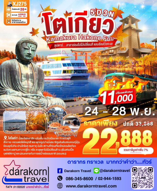โปรไฟไหม้ ทัวร์ญี่ปุ่น โตเกียว ฟูจิ แอบชมวิว 5วัน3คืน โปรแรง ลดราคา 11000 บาท จองด่วน Posted on November 13, 2025 by Sales Darakorn Travel 13 Nov ทัวร์ญี่ปุ่น โตเกียว ฟูจิ แอบชมวิว 5วัน3คืน โปรแรง ลดราคา 11000 บาท จองด่วน นั่งรถไฟคลาสิค ชมวิวทะเลสาบคาวากูจิโกะ ย้อนยุคย่านโทโยสุ บุฟฟเ่ต์ขาปู+ออนเซน วันเดินทาง 24-28 พ.ย. 2568 จากราคา 33,888.- เหลือเพียง 22,888.- Facebook iconFacebookTwitter iconTwitterLINE iconLine Sales Darakorn Travel ทัวร์ญี่ปุ่น ฟุกุโอกะ เบบปุ ฟรีเดย์ 5วัน3คืน โปรแรง ลดราคา 9000 บาท จองด่วน ทัวร์ญี่ปุ่น โอซาก้า โอบาระ 6วัน4คืน โปรแรง ลดราคา 14000 บาท จองด่วน 9 ที่สุดท้าย