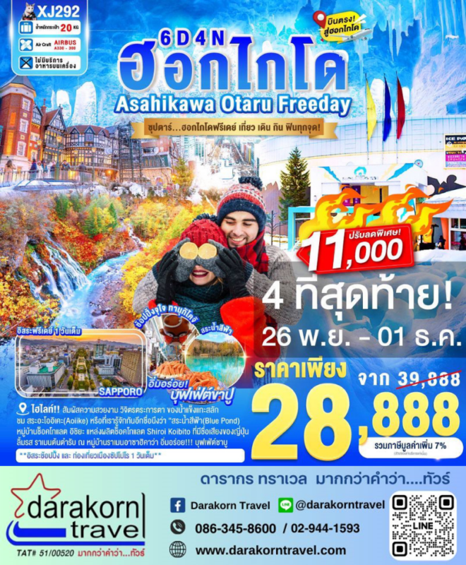 โปรไฟไหม้ ทัวร์ญี่ปุ่น ฮอกไกโด โอตารุ ฟรีเดย์ 6วัน4คืน โปรแรง ลดราคา 11000 บาท จองด่วน Posted on November 14, 2025 by Sales Darakorn Travel 14 Nov ทัวร์ญี่ปุ่น ฮอกไกโด โอตารุ ฟรีเดย์ 6วัน4คืน โปรแรง ลดราคา 11000 บาท จองด่วน สระน้ำสีฟ้า ชมสระอะโออิเคะ หมู่บ้านช็อคโกแลต หมู่บ้านราเมนอาซาฮิคาว่า วันเดินทาง 26พ.ย. – 01 ธ.ค. 2568 จากราคา 39,888.- เหลือเพียง 28,888.- Facebook iconFacebookTwitter iconTwitterLINE iconLine Sales Darakorn Travel ทัวร์ญี่ปุ่น โอซาก้า โอบาระ 5วัน3คืน โปรแรง ลดราคา 11000 บาท จองด่วน