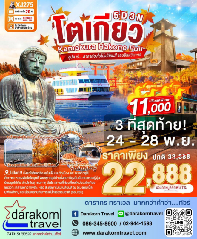 โปรไฟไหม้ ทัวร์เวียดนาม โตเกียว ฟูจิ ฮาโกเน่ 5วัน3คืน โปรแรง ลดราคา 11000 บาท จองด่วน 3 ที่สุดท้าย Posted on November 14, 2025November 14, 2025 by Sales Darakorn Travel 14 Nov ทัวร์เวียดนาม โตเกียว ฟูจิ ฮาโกเน่ 5วัน3คืน โปรแรง ลดราคา 11000 บาท จองด่วน 3 ที่สุดท้าย นั่งรถไฟคลาสสิค ชมวิวทะเลฟูจิ สักการะหลวงพ่อโตไดบุทสึ ชมวิวทะเลสาบคาวากูจิโกะ บุฟเฟ่ต์ขาปู วันเดินทาง 24 – 28 พ.ย. 68 จากราคา 33,888.- เหลือเพียง 22,888.- Facebook iconFacebookTwitter iconTwitterLINE iconLine Sales Darakorn Travel ทัวร์เวียดนาม ดานัง ฮอยอัน เว้ บานาฮิลล์ 4วัน3คืน โปรแรง ลดราคา 1000 บาท จองด่วน ทัวร์ญี่ปุ่น โยโกฮาม่า โยโกสุดโซจึ้ง 6วัน4คืน โปรแรง ลดราคา 10000 บาท จองด่วน