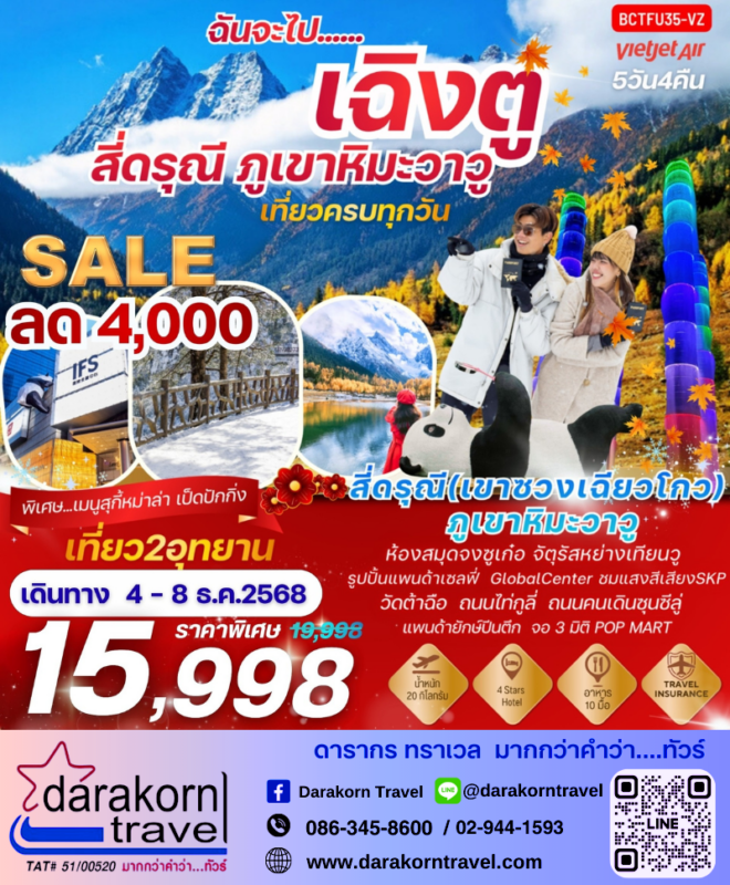 โปรไฟไหม้ ทัวร์จีน ฉันจะไป…เฉิงตู สี่ดรุณี ภูเขาหิมะวาวู 5วัน4คืน โปรแรง ลดราคา 4000 บาท จองด่วน Posted on November 27, 2025 by Sales Darakorn Travel 27 Nov ทัวร์จีน ฉันจะไป…เฉิงตู สี่ดรุณี ภูเขาหิมะวาวู 5วัน4คืน โปรแรง ลดราคา 4000 บาท จองด่วน อุทยานสี่ดรุณี อุทยานภูเขาหิมะวาวู่ วัดต้าฉือ ถนนไท่กูลี่ วันเดินทาง 04 – 08 ธ.ค.68 จากราคา 19,998.- เหลือเพียง 15,998. Facebook iconFacebookTwitter iconTwitterLINE iconLine Sales Darakorn Travel ทัวร์ญี่ปุ่น โตเกียว ฟูจิ คาวาโกะ 5วัน3คืน โปรแรง ลดราคา 6000 บาท จองด่วน