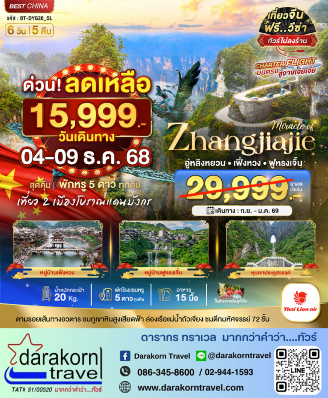 โปรไฟไหม้ ทัวร์จีน จางเจียเจี้ย อู่หลิงหยวน 6วัน5คืน โปรแรง ลดราคา 14000 บาท จองด่วน Posted on December 1, 2025 by Sales Darakorn Travel 01 Dec ทัวร์จีน จางเจียเจี้ย อู่หลิงหยวน 6วัน5คืน โปรแรง ลดราคา 14000 บาท จองด่วน หมู่บ้านฟรงหรงเจิ้น หุบเขาประตูสวรรค์ หมู่บ้านเฟิงหวง ล่องเรือแม่น้ำถัวเจียง วันเดินทาง 04 – 09 ธ.ค.68 จากราคา 29,999.- เหลือเพียง 15,990. Facebook iconFacebookTwitter iconTwitterLINE iconLine Sales Darakorn Travel ทัวร์จีน คุนหมิง ต้าหลี่ ลี่เจี่ยง แชงกรีล่า 6วัน5คืน โปรแรง ลดราคา 4000 บาท จองด่วน ทัวร์จีน ฉางซา จิวเจียง ซ่างเหรา วั่งเซียนกู่ 6วัน5คืน โปรแรง ลดราคา 13000 บาท จองด่วน