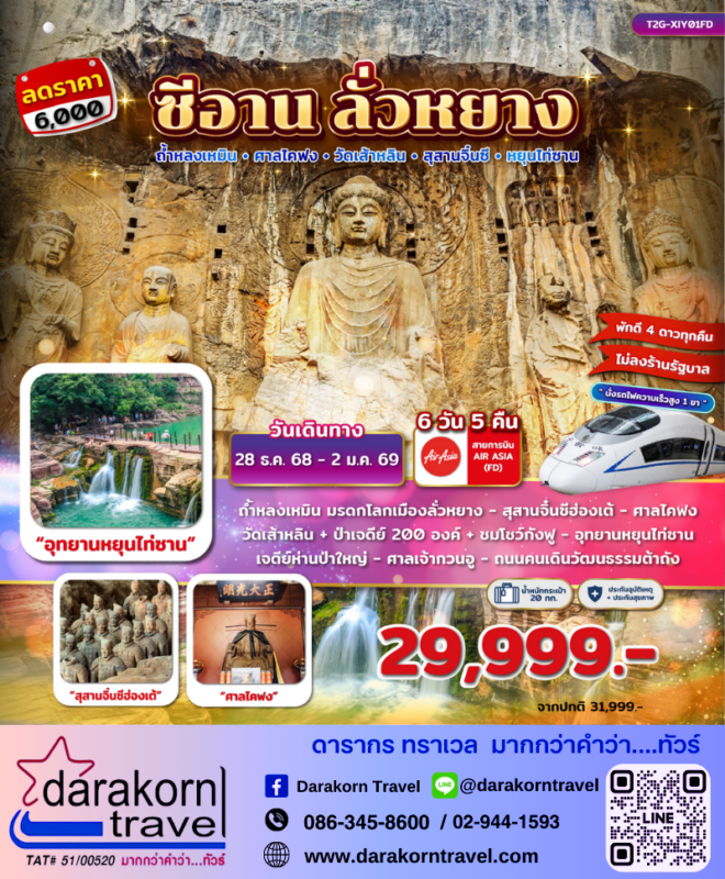 โปรไฟไหม้ ทัวร์จีน ซีอาน ลั่วหยาง 6วัน4คืน โปรแรง ลดราคา 6,000 บาท จองด่วน Posted on December 18, 2025 by Sales Darakorn Travel 18 Dec ทัวร์จีน ซีอาน ลั่วหยาง 6วัน4คืน โปรแรง ลดราคา 6,000 บาท จองด่วน ถ้ำหลงเหมิน วัดเส้าหลิน ศาลเจ้ากวนอู เจดีย์ห่านป่าใหญ่ วันเดินทาง 28ธ.ค. – 02 ม.ค.69 จากราคา 31,999.- เหลือเพียง 29,999. Facebook iconFacebookTwitter iconTwitterLINE iconLine Sales Darakorn Travel ทัวร์จีน คุนหมิง กุ้ยโจว 6วัน4คืน โปรแรง ลดราคา 4,000 บาท จองด่วน ทัวร์จีน เวลคัม ยูนนานภาค2 5วัน4คืน โปรแรง ลดราคา 7,000 บาท จองด่วน