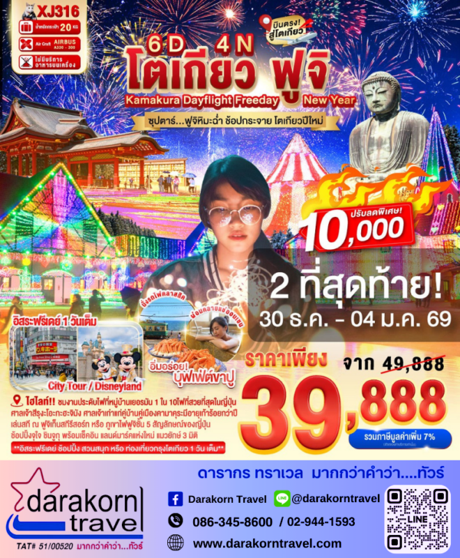โปรไฟไหม้ ทัวร์ญี่ปุ่น โตเกียว ฟูจิ 6วัน4คืน โปรแรง ลดราคา 10,000 บาท จองด่วน 2 ที่สุดท้าย Posted on December 25, 2025 by Sales Darakorn Travel 25 Dec ทัวร์ญี่ปุ่น โตเกียว ฟูจิ 6วัน4คืน โปรแรง ลดราคา 10,000 บาท จองด่วน 2 ที่สุดท้าย ชมงานประดับไฟที่หมู่บ้านเยอรมัน เล่นสกี ณ ฟูจิเท็น หมู่บ้านโอชิโนะฮัคไค ช้อปปิ้งจุใจชินจูกุ วันเดินทาง 30 ธ.ค. – 04 ม.ค. 69 จากราคา 49,888.- เหลือเพียง 39,888 Facebook iconFacebookTwitter iconTwitterLINE iconLine Sales Darakorn Travel ทัวร์ญี่ปุ่น โตเกียว ฟูจิ 5วัน3คืน โปรแรง ลดราคา 10,000 บาท จองด่วน 7 ที่สุดท้าย ทัวร์ญี่ปุ่น GALA YUZAWA 6วัน4คืน โปรแรง ลดราคา 18,000 บาท จองด่วน 3 ที่สุดท้าย