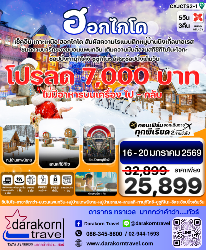โปรไฟไหม้ ทัวร์ญี่ปุ่น ฮอกไกโด เช็คอินเกาะเหนือ ลานสกีชิกิไซโนะโอกะ 5วัน3คืน โปรแรง ลดราคา 7,000 บาท จองด่วน Posted on January 14, 2026 by Sales Darakorn Travel 14 Jan ทัวร์ญี่ปุ่น ฮอกไกโด เช็คอินเกาะเหนือ ลานสกีชิกิไซโนะโอกะ 5วัน3คืน โปรแรง ลดราคา 7,000 บาท จองด่วน หมู่บ้านเทพนิยาย ลานสกีชิกิไซ ช้อปปิ้งทานุโคจิ ขบวนแพนกวิน หมู่บ้านราเมง วันเดินทาง 16-20 ม.ค. 69 จากราคา 32,899.- เหลือเพียง 25,899.- Facebook iconFacebookTwitter iconTwitterLINE iconLine Sales Darakorn Travel ทัวร์ญี่ปุ่น ฮอกไกโด หิมะ ขวาซ้ายขวา 6วัน4คืน โปรแรง ลดราคา 9,000 บาท จองด่วน ทัวร์ญี่ปุ่น โอซาห้า เกียวโต อาราชิย่ามา ชิราคาวาโกะ 5วัน3คืน โปรแรง ลดราคา 4,000 บาท จองด่วน