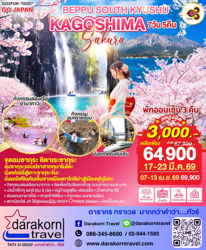 โปรไฟไหม้ ทัวร์ญี่ปุ่น เบบปุ South Kyushu 7วัน5 คืน โปรแรง ลดราคา 3,000 บาท จองด่วน Posted on February 3, 2026 by Sales Darakorn Travel 03 Feb ทัวร์ญี่ปุ่น เบบปุ South Kyushu 7วัน5 คืน โปรแรง ลดราคา 3,000 บาท จองด่วน จุดชมซากุระ ชิดาเระซากุระ ล่องเรือชมซากุระยานากาวะ หมู่บ้านยุฟุอิน น้ำตกฮาระจิริ ช้อปปิ้งแทนจิน วันเดินทาง 17-23 มี.ค.69 07-13 เ.ม.ย.69 จากราคา 67,900.-/69,900. เหลือเพียง 64,900.- Facebook iconFacebookTwitter iconTwitterLINE iconLine Sales Darakorn Travel ทัวร์ญี่ปุ่น Tokyo Nigata Naeba 6วัน4 คืน โปรแรง ลดราคา 3,000 บาท จองด่วน ทัวร์ญี่ปุ่น Unseen Yamaguchi 7วัน5 คืน โปรแรง ลดราคา 3,000 บาท จองด่วน