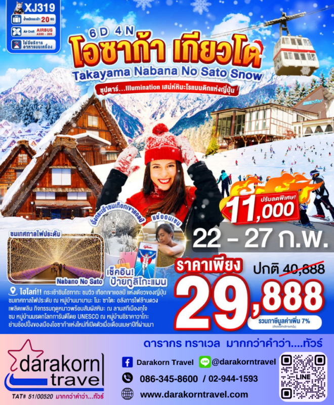 โปรไฟไหม้ ทัวร์ญี่ปุ่น โอซาก้า – เกียวโต 6วัน4คืน โปรแรง ลดราคา 11,000 บาท จองด่วน Posted on February 11, 2026 by Sales Darakorn Travel 11 Feb ทัวร์ญี่ปุ่น โอซาก้า – เกียวโต 6วัน4คืน โปรแรง ลดราคา 11,000 บาท จองด่วน กระเช้าชินโฮทากะ หมู่บ้าน นาบานะ โนะ ซาโตะ หมู่บ้านชิราคาวาโกะ กิจกรรมฤดูหนาว พร้อมสัมผัสหิมะ ณ ลานสกีเมืองคุโจ วันเดินทาง 22 – 27 ก.พ. 69 จากราคา 40,888.- เหลือเพียง 29,888.- Facebook iconFacebookTwitter iconTwitterLINE iconLine Sales Darakorn Travel ทัวร์ญี่ปุ่น ฮอกไกโด Mombetsu Asahikawa 6วัน5คืน โปรแรง ลดราคา 8,000 บาท จองด่วน ทัวร์ญี่ปุ่น Tokyo Atami Fuji 5วัน3คืน โปรแรง ลดราคา 7,000 บาท จองด่วน