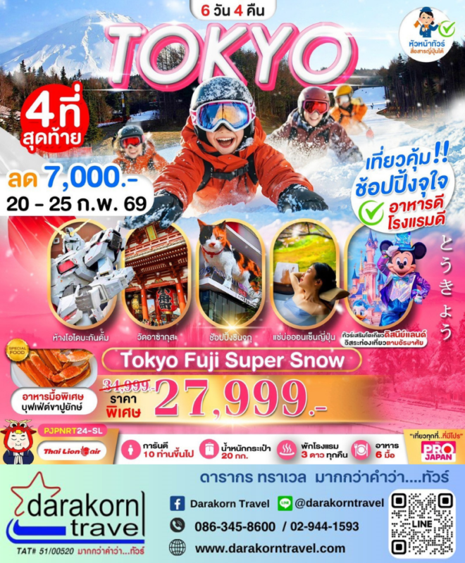 โปรไฟไหม้ ทัวร์ญี่ปุ่น โตเกียว ซุปเปอร์สโนว์ 6วัน4คืน โปรแรง ลดราคา 7,000 บาท จองด่วน 4 ที่สุดท้าย Posted on February 12, 2026 by Sales Darakorn Travel 12 Feb ทัวร์ญี่ปุ่น โตเกียว ซุปเปอร์สโนว์ 6วัน4คืน โปรแรง ลดราคา 7,000 บาท จองด่วน 4 ที่สุดท้าย วัดอาซากุสะ ห้างโอไดบะกันดั้ม ช้อปปิ้งชินไซบาชิ อิสระท่องเที่ยว เลือกซื้อทัวร์เสริมโตเกียวดิสนีย์ วันเดินทาง 20-25ก.พ.69 จากราคา 34,999.- เหลือเพียง 27,999.- Facebook iconFacebookTwitter iconTwitterLINE iconLine Sales Darakorn Travel ทัวร์ญี่ปุ่น โตเกียว ซุปเปอร์สโนว์ 6วัน4คืน โปรแรง ลดราคา 7,000 บาท จองด่วน 6 ที่สุดท้าย ทัวร์ญี่ปุ่น โอซาก้า เกียวโต ฟรีเดย์ 5วัน3คืน โปรแรง ลดราคา 8,000 บาท จองด่วน 5 ที่สุดท้าย