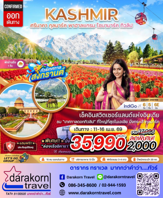 โปรไฟไหม้ ทัวร์อินเดีย แคชเมียร์ พาฮาลแกรม โซนามาร์ค ทิวลิป โปรแรง ลดราคา 2000 บาท จองด่วน Posted on March 18, 2026 by Sales Darakorn Travel 18 Mar ทัวร์อินเดีย แคชเมียร์ พาฮาลแกรม โซนามาร์ค ทิวลิป โปรแรง ลดราคา 2000 บาท จองด่วน เช็คอินสวิตเซอร์แลนด์แห่งอินเดีย ชมเทศกาลดอกทิวลิป นั่งกระเช้ากุลมาร์ค ล่องเรือชิคารา วันเดินทาง 11 – 16 เม.ย.69 จากราคา 37,990.- เหลือเพียง 35,990.- Facebook iconFacebookTwitter iconTwitterLINE iconLine Sales Darakorn Travel ทัวร์ตุรกี อิสตันบลู อดานา สวนดอกไม้ทิวลิป โปรแรง ลดราคา 2000 บาท จองด่วน ทัวร์อินเดีย แคชเมียร์ พาฮาลแกรม โซนามาร์ค ทิวลิป โปรแรง ลดราคา 1000 บาท จองด่วน