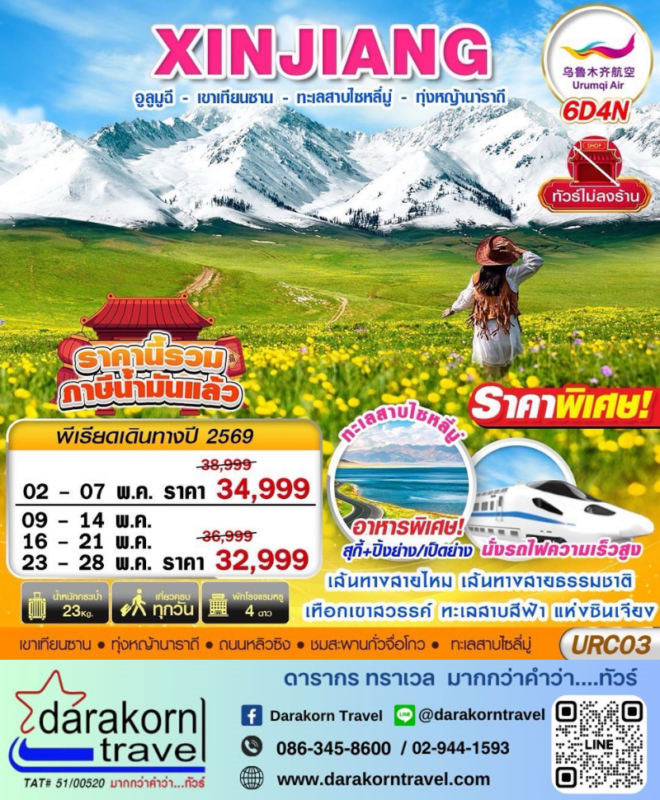 โปรไฟไหม้ ทัวร์จีน ซินเจียง อูมูลูชี เขาเทียนซาน ทะเลสาบไซหลี่มู่ 6วัน4คืน โปรแรง ลดราคา 4000 บาท จองด่วน Posted on April 27, 2026 by Sales Darakorn Travel 27 Apr ทัวร์จีน ซินเจียง อูมูลูชี เขาเทียนซาน ทะเลสาบไซหลี่มู่ 6วัน4คืน โปรแรง ลดราคา 4000 บาท จองด่วน ชมสะพานกั่วจื่นโกว ทะเลสาบไซลี่มู่ เขาเทียนซาน ทุ่งหญ้านาราถี ถนนหลิวซิง วันเดินทาง 02-07/09-14/16-21/ 23-28 พ.ค.69 จากราคา 38,999.-/36,999.- เหลือเพียง 34,999.-/32,999.- Facebook iconFacebookTwitter iconTwitterLINE iconLine Sales Darakorn Travel ทัวร์ตุรเคีย แบบสับวับวาว บินตรงไม่ต้องอ้อม 8วัน6คืน โปรแรง ลดราคา 3333 บาท จองด่วน