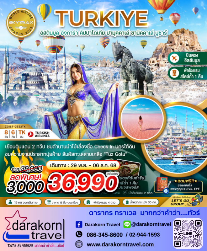 ทัวร์ตุรกี อิสตันบลู อังการ่า คัปปาโดเกีย ปามุคคาเล่ บูซาร์ 8วัน6คืน โปรแรง ลดราคาสูงสุด 3000 บาท จองด่วน