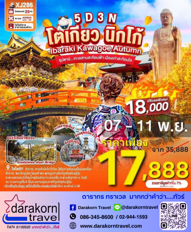 ทัวร์ญี่ปุ่น โตเกียว นิกโก้ เรารักใบไม้เปลี่ยนสี 6วัน4คืน โปรแรง ลดราคาสูงสุด 16000 บาท จองด่วน