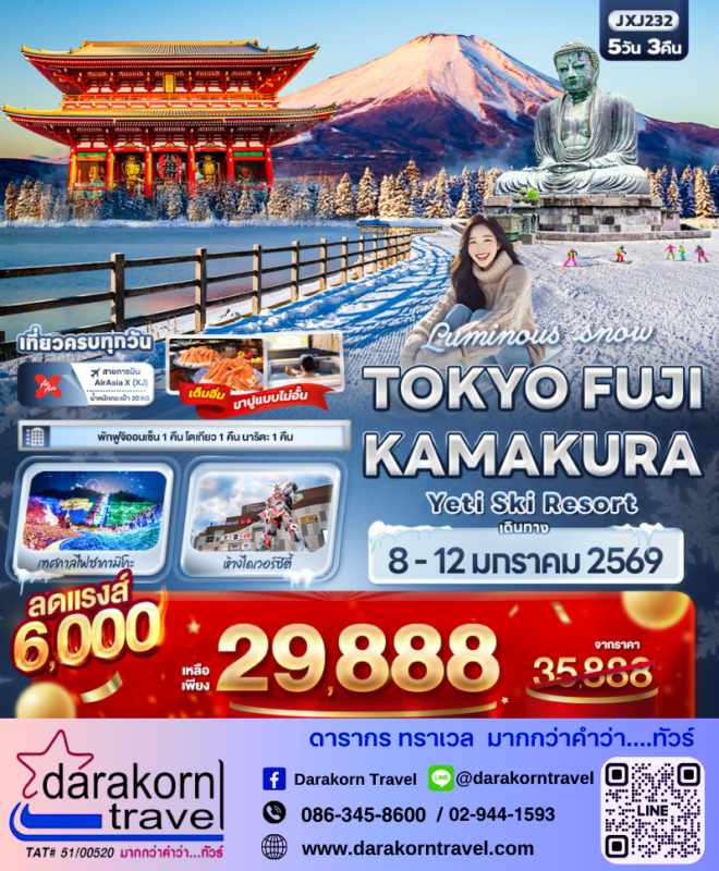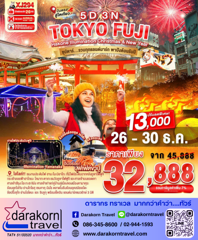 ทัวร์ญี่ปุ่น โตเกียว ฟูจิ 6วัน4คืน โปรแรง ลดราคา 13,000 บาท จองด่วน