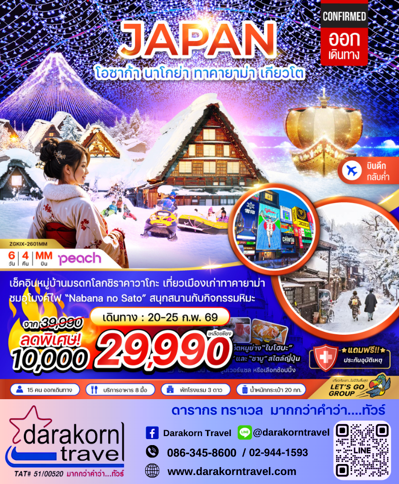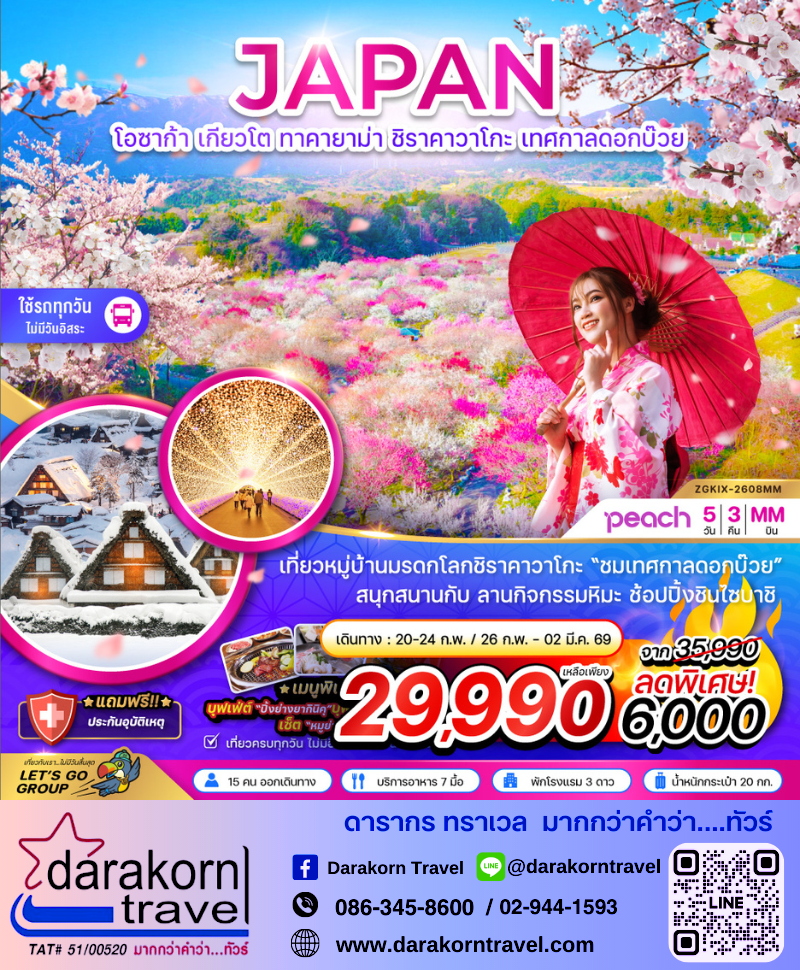 ทัวร์ญี่ปุ่น โอซาก้า เกียวโต ทาคายาม่า เทศกาลดอกบ๊วย 5วัน3คืน โปรแรง ลดราคา 6,000 บาท จองด่วน