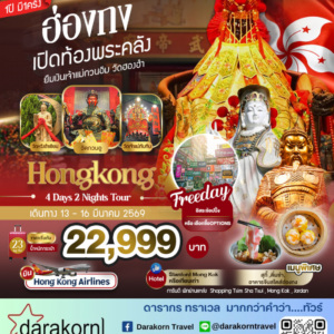 ทัวร์ฮ่องกง – เปิดท้องพระคลัง ยืมเงินเจ้าแม่กวนอิม วัดฮองฮำ 4วัน2คืน(HX)เดือนมีนาคม 2569