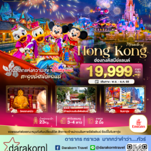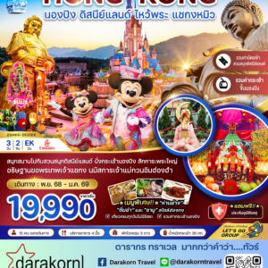 ทัวร์ฮ่องกง – ดิสนีย์แลนด์ ไหว้พระ เที่ยวเต็มทุกวัน (รวมบัตรดิสนีย์) 3วัน2คืน(EK)เดือนตุลาคม 2568 – มกราคม 2569