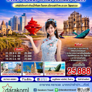 ทัวร์จีน – ชิงเต่า เผิงไหล เว่ยไห่ เยียนไถ มาเก๊า 7วัน6คืน(NX)เดือนพฤษภาคม – มิถุนายน 2569