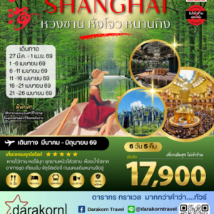 ทัวร์จีน – เที่ยว 4 เมืองดังแดนมังกรตะวันออก หวงซาน นครเซี่ยงไฮ้ เมืองหังโจว นครหนานกิง 6วัน5คืน(SL)เดือนมีนาคม – มิถุนายน 2569