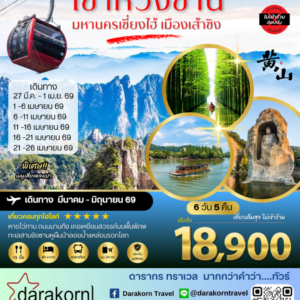 ทัวร์จีน – บินตรงหวงซาน หุบเขาเทวดาวั่งเซียนกู่ หมู่บ้านโบราณหวงหลิ่ง หมู่บ้านโบราณหงชุน 6วัน5คืน(SL)เดือนมีนาคม – มิถุนายน 2569