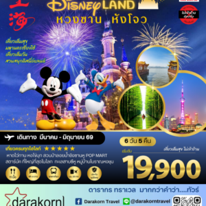 ทัวร์จีน – เมืองหวงซาน นครเซี่ยงไฮ้ เมืองหังโจว เที่ยว Disneyland เต็มวัน 6วัน4คืน(SL)เดือนมีนาคม – มิถุนายน 2569