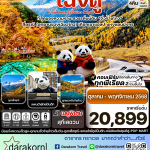 ทัวร์จีน – สี่ดรุณี จิ่วจ้ายโกว ใบไม้เปลี่ยนสี 5วัน4คืน(VZ)เดือนตุลาคม – พฤศจิกายน 2568