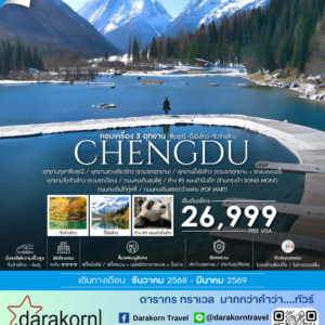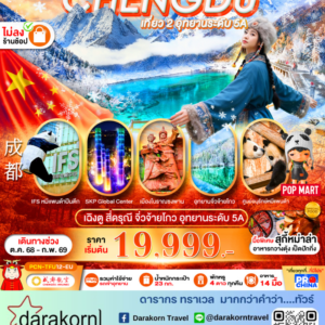ทัวร์จีน – เฉิงตู ไม่ลงร้าน เที่ยว 3 อุทยาน จิ่วจ้ายโกว หวงหลง ต๋ากู่ปิงชวน 6วัน5คืน(SL)เดือนพฤศจิกายน – ธันวาคม 2568