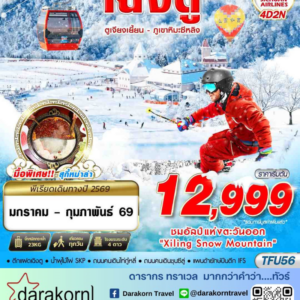 ทัวร์จีน – เฉิงตู – จิ่วจ้ายโกว – หวงหลง – สี่ดรุณี 7วัน5คืน(3U)เดือนมกราคม – มีนาคม 2569