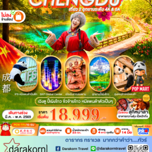 ทัวร์จีน – เฉิงตู ปี้เผิงโกว จิ่วจ้ายโกว หมีแพนด้า 6วัน5คืน(EU)เดือนมีนาคม – พฤษภาคม 2569