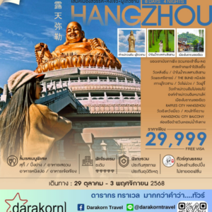 ทัวร์จีน – เสน่ห์เมืองสวรรค์ หังโจว ผู่โถวซาน 6วัน4คืน(CA)เดือนตุลาคม – พฤศจิกายน 2568