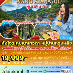 ทัวร์จีน – หังโจว หุบเขาเทวดา หมู่บ้านหวงหลิง 5วัน4คืน(FD)เดือนตุลาคม 2568