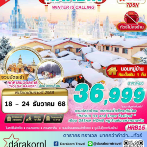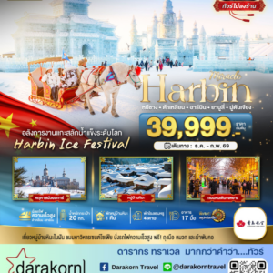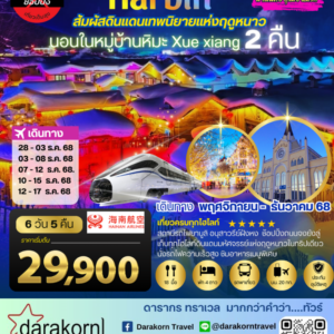 ทัวร์จีน – เที่ยวเมืองฮาร์บิน สัมผัสดินแดนเทพนิยายแห่งฤดูหนาว นอนหมู่บ้านหิมะ Xue xiang China snow town 2 คืน 6วัน5คืน(HU)เดือนพฤศจิกายน – ธันวาคม 2568