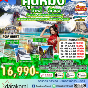 ทัวร์จีน – มหัศจรรย์…คุนหมิง ต้าหลี่ ลี่เจียง แชงกรีล่า 6วัน5คืน(KY)เดือนตุลาคม – ธันวาคม 2568