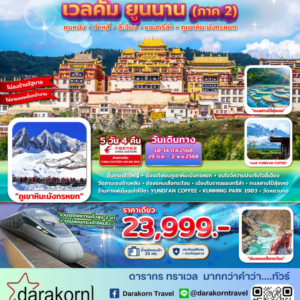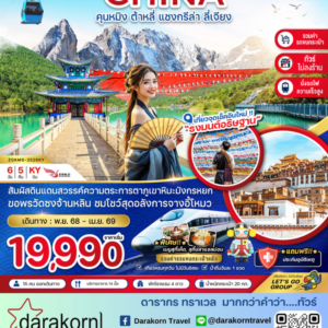 ทัวร์จีน – คุนหมิง ต้าหลี่ แชงกรีล่า ลี่เจียง (นั่งรถไฟ-ไม่ลงร้าน-รวมรถขนกระเป๋า) 6วัน5คืน(KY)เดือนตุลาคม 2568 – เมษายน 2569